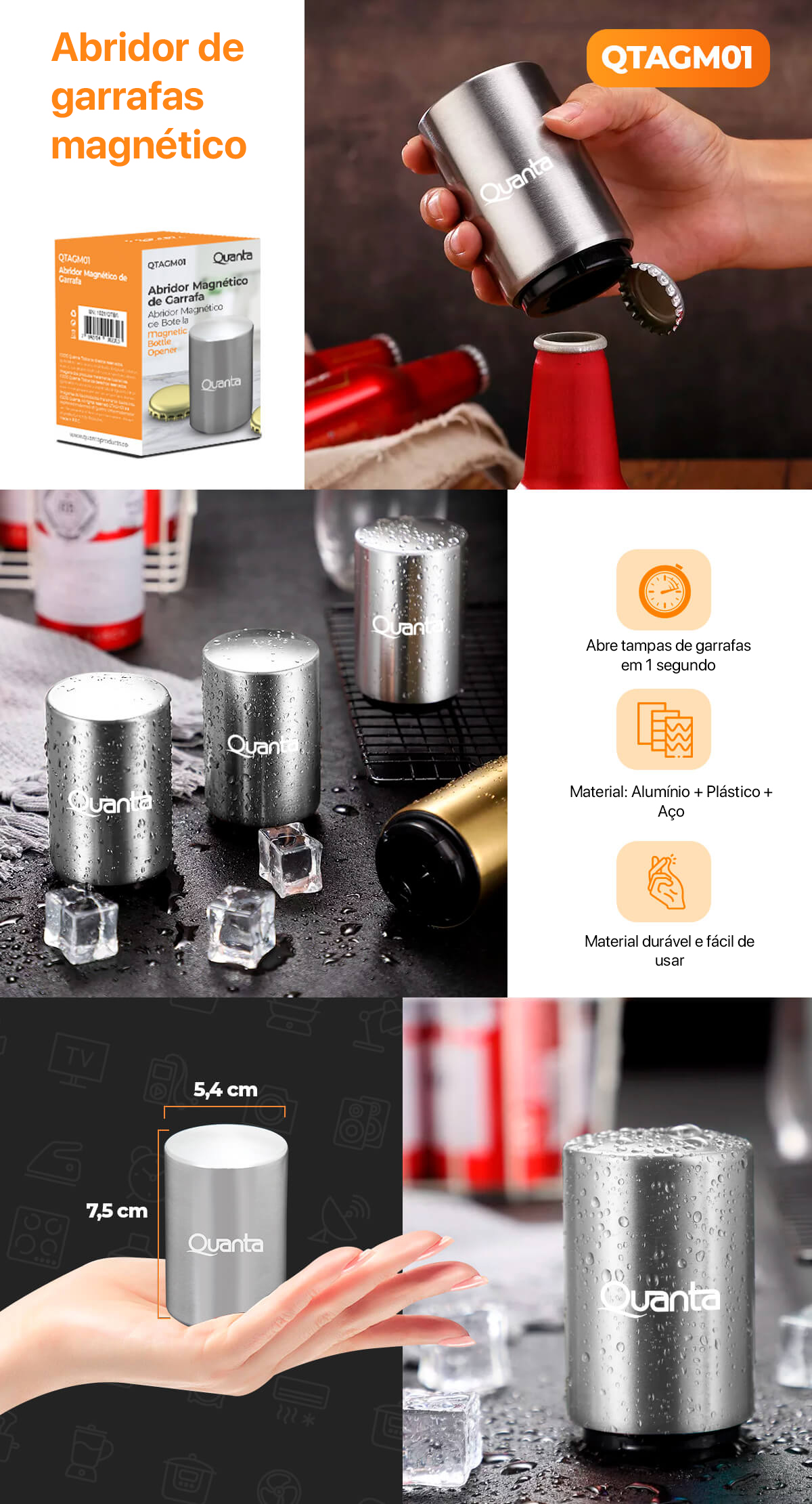Abridor de Garrafas Magnético Quanta QTAGM01 - Prata | AtlanticoShop
