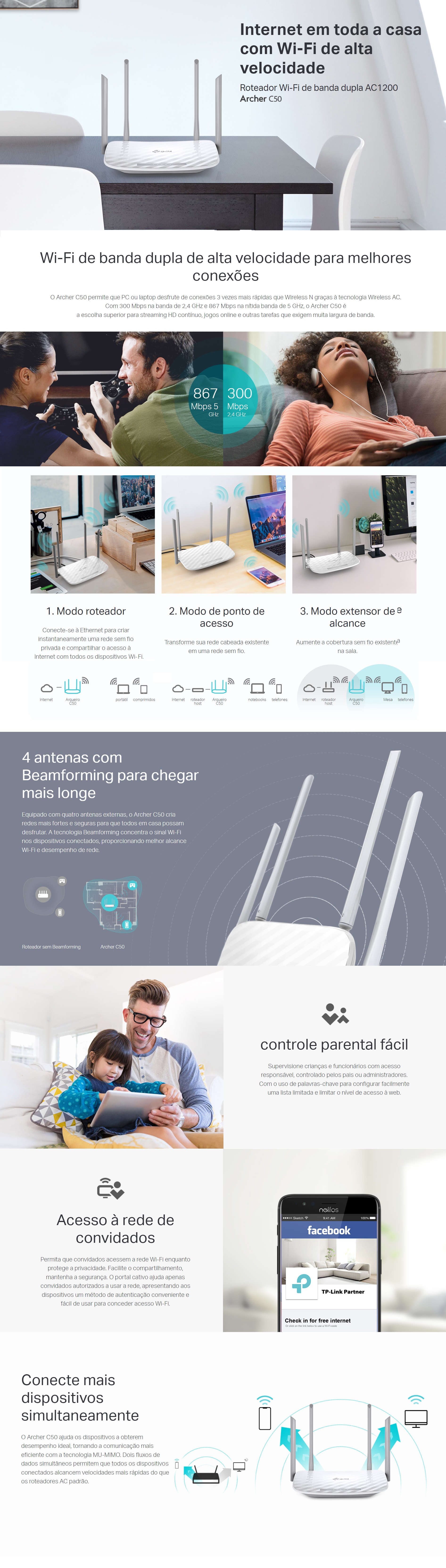 FunçõesWMM, Controle de Banda - Controle de acesso - Gerenciamento local ou remoto - Controle parental e de gerenciamento local, Lista de hosts,horários de acesso e gerenciamento de regras - Suporta rede de convidados para ambos sinais