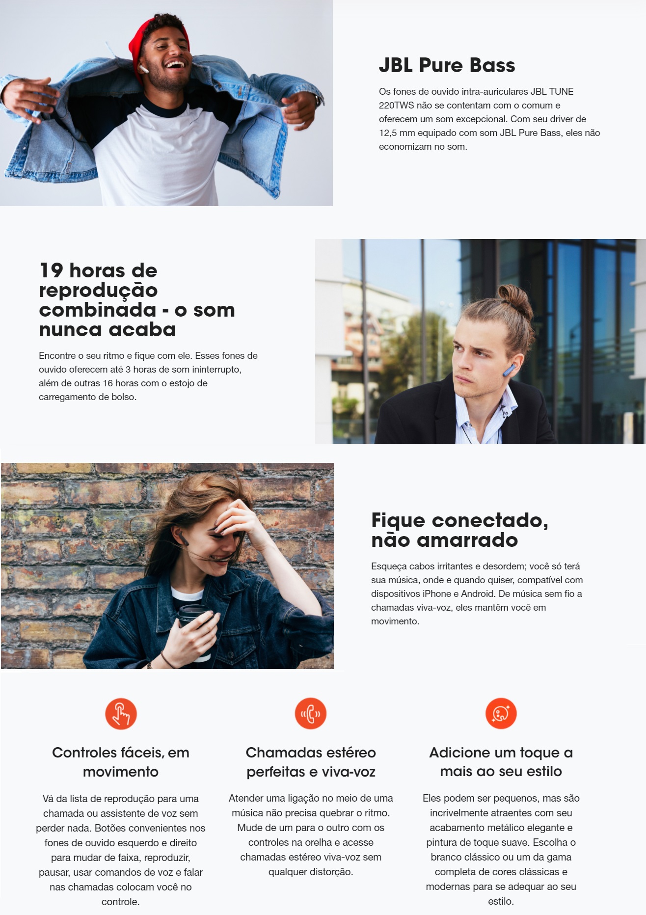 Fone de ouvido JBL Tune 220TWS Bluetooth - Black | AtlanticoShop