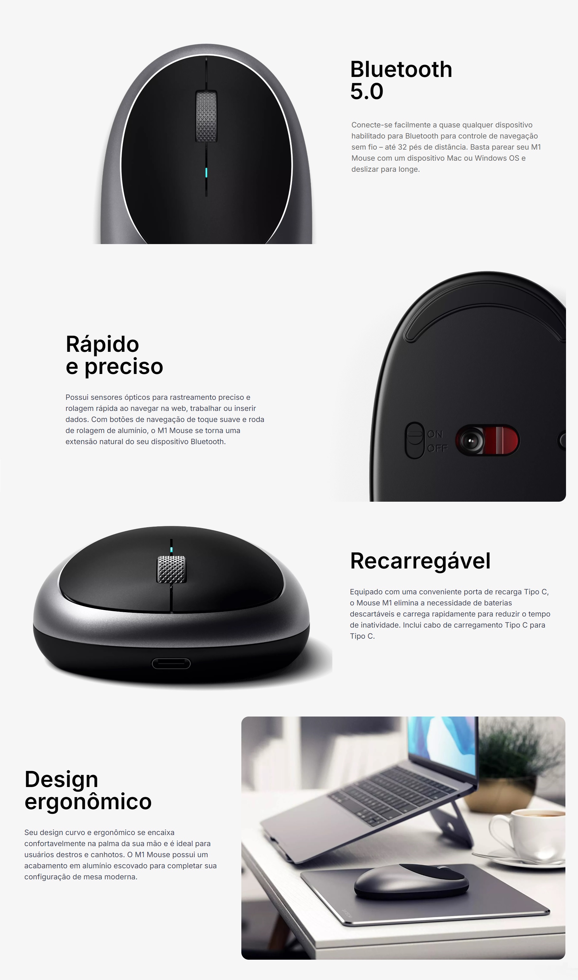 Mouse Wireless Satechi M1 ST-ABTCMM - Space Gray | AtlanticoShop