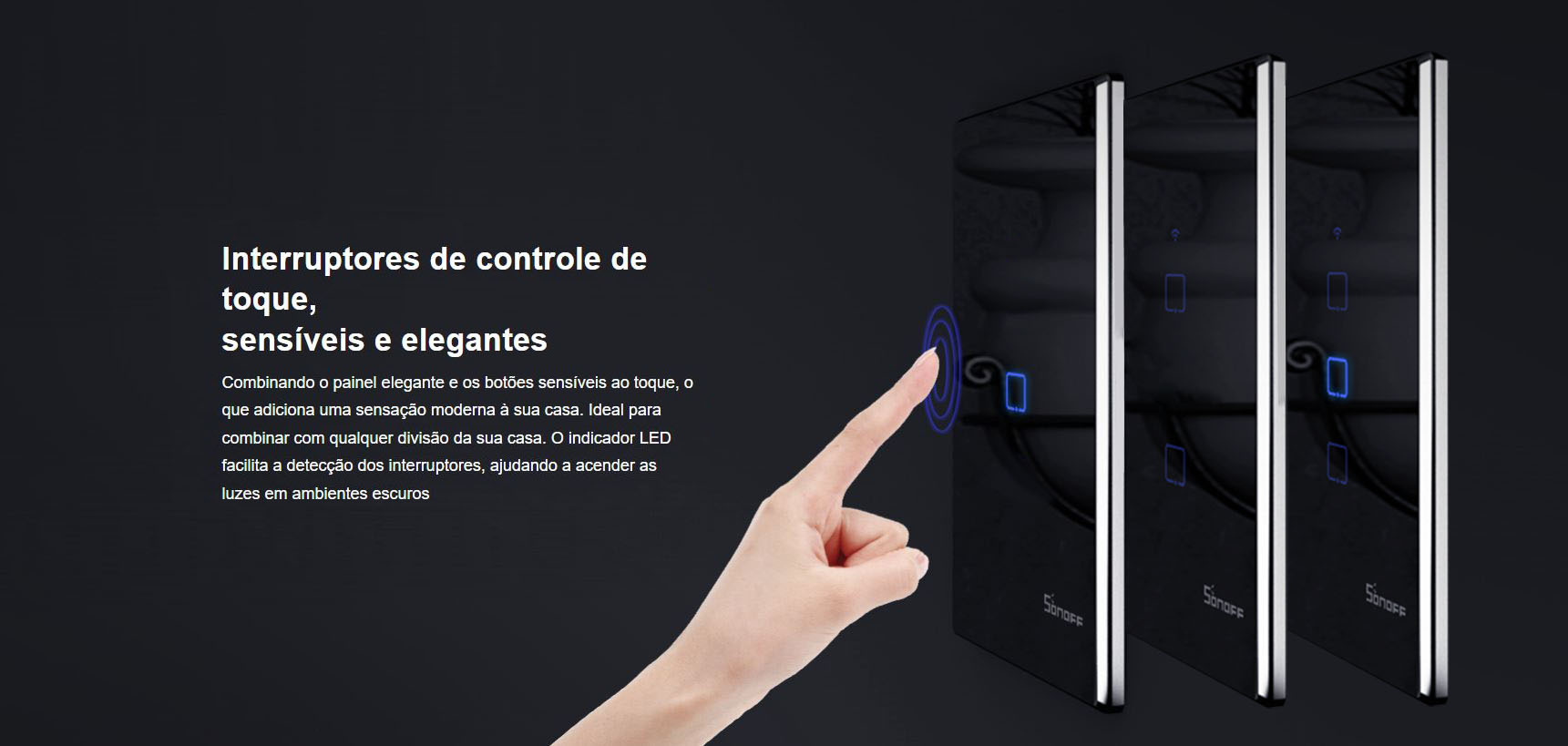 Interruptor de Parede Smart Sonoff T2US3C Wi-Fi 2V - White | AtlanticoShop