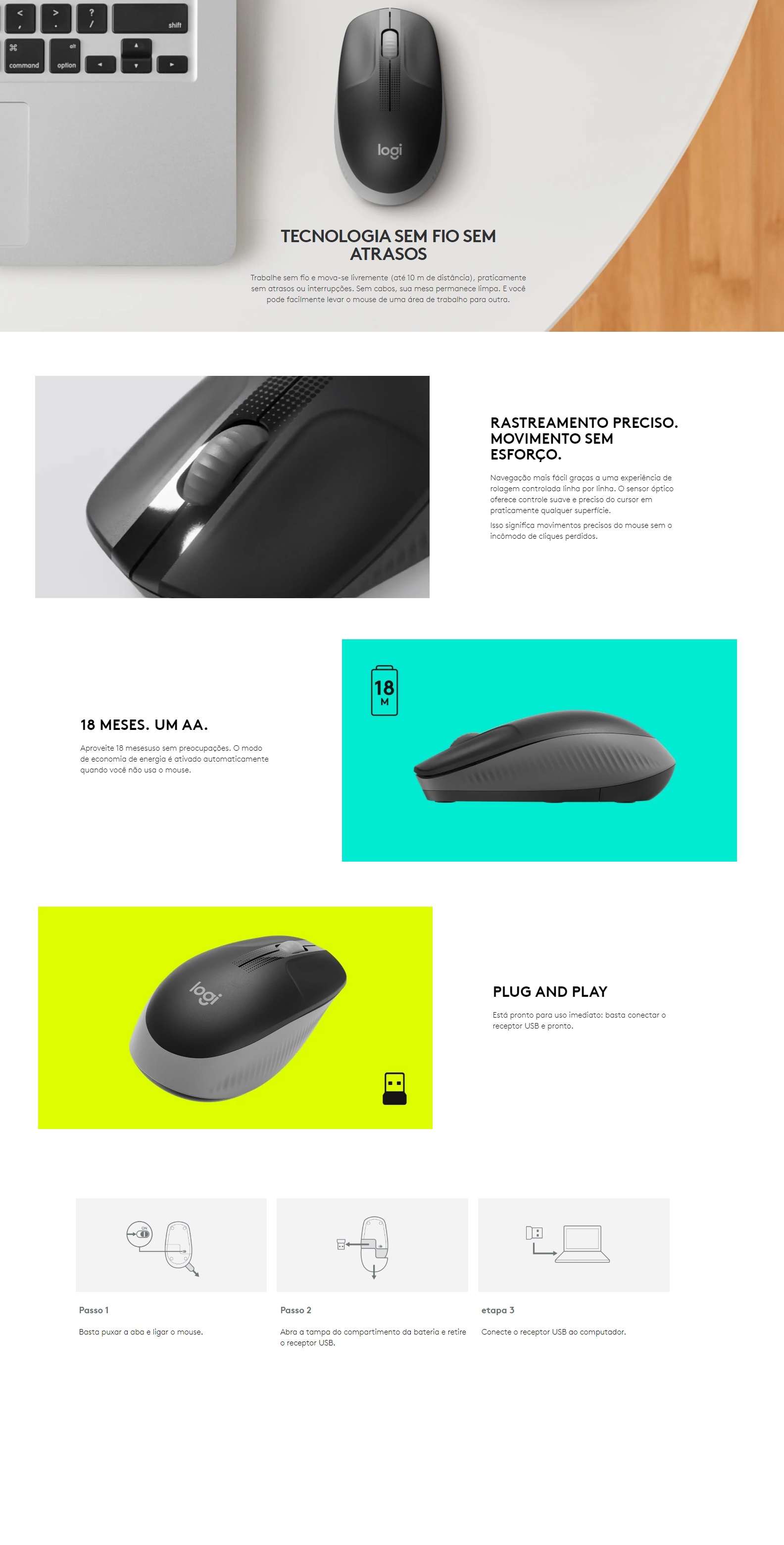 Mouse Wireless Logitech M190 - Charcoal Gray | AtlanticoShop