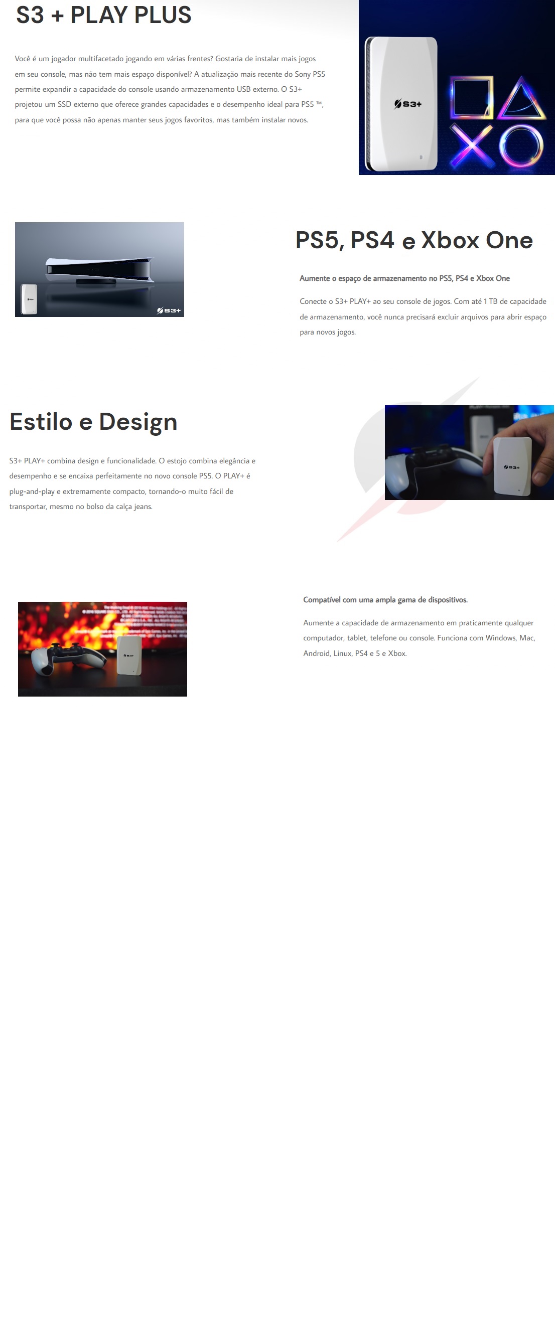 SSD Externo S3+ Play Plus S3SSDP256 2.5" 256GB - Branco | AtlanticoShop