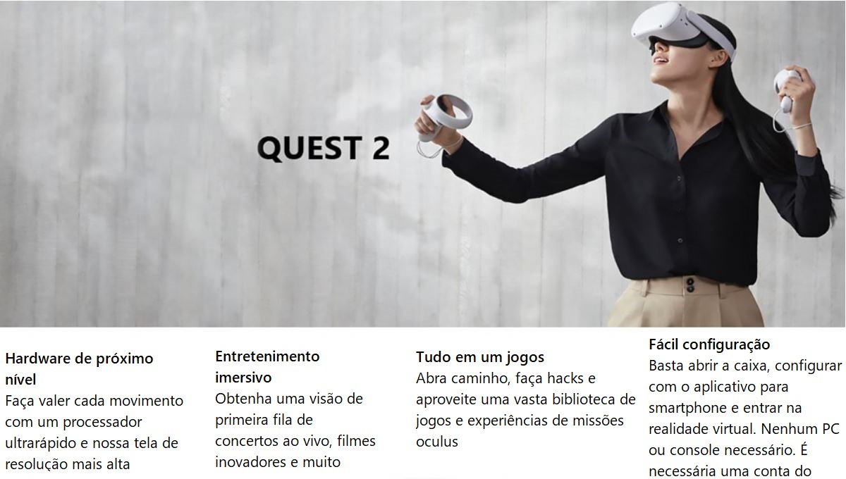 Óculos De Realidade Virtual Oculus Facebook Quest 2 128GB - White | AtlanticoShop