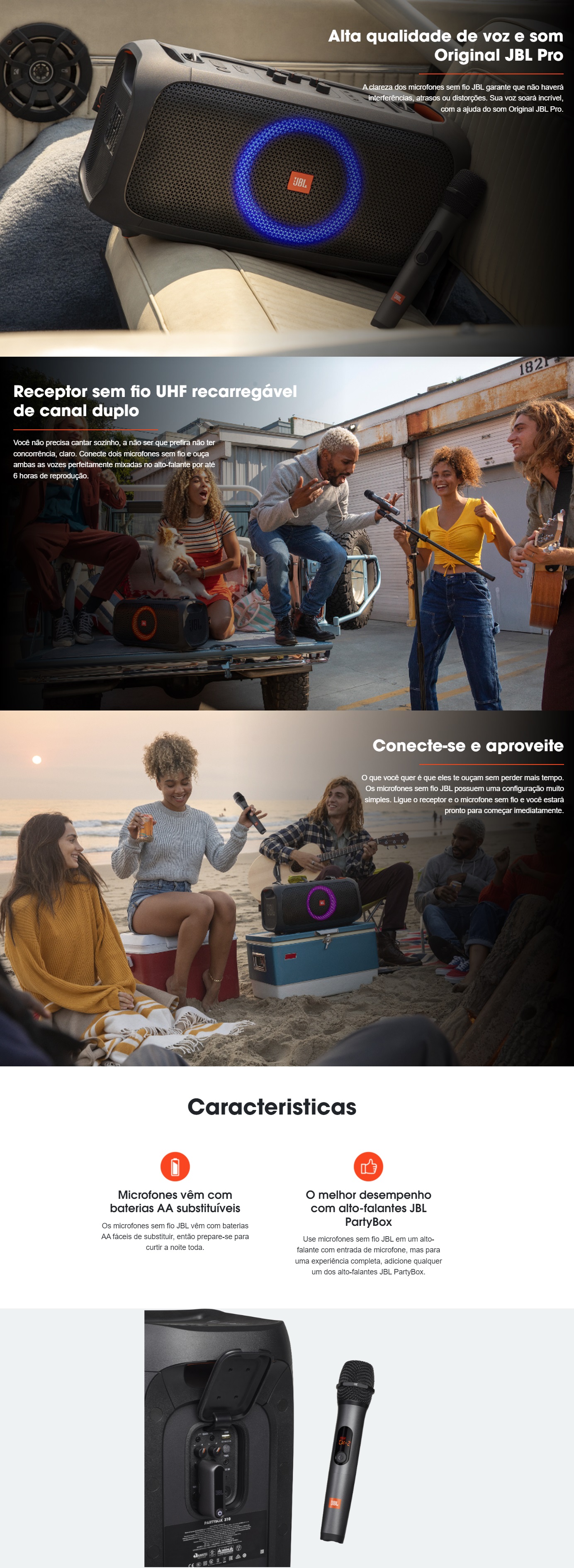Receptor: 1000 mAh - Microfone: 4x AA alcalino (incluído)