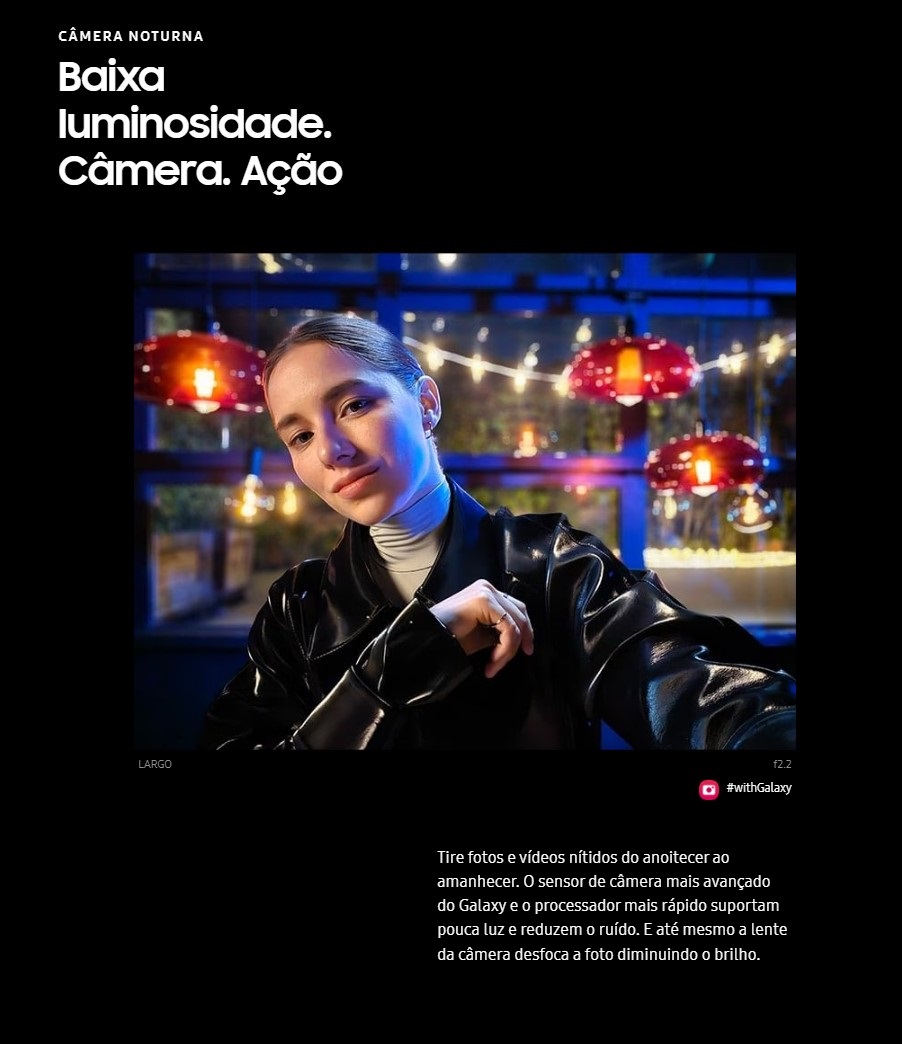 Câmera Secundaria12 MP, f/2.2, 25mm (wide), PDAF, Dual video call, Auto-HDR, HDR10+, Vídeo 4K@30/60fps, 1080p@30fps