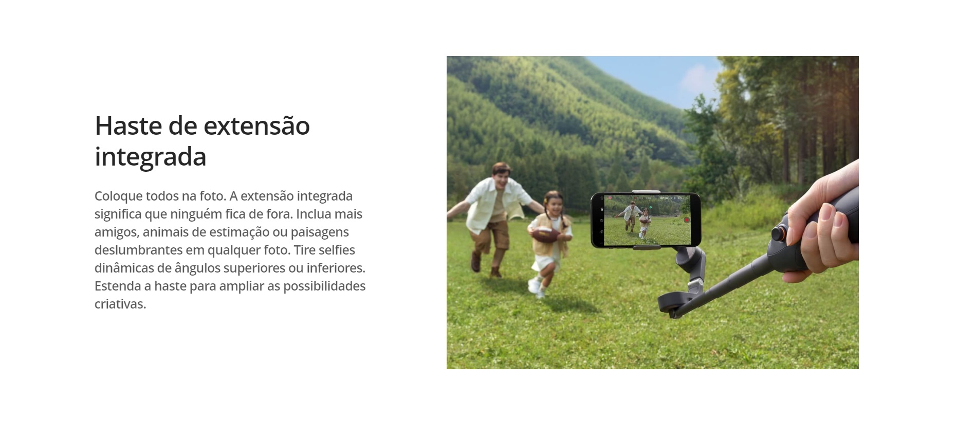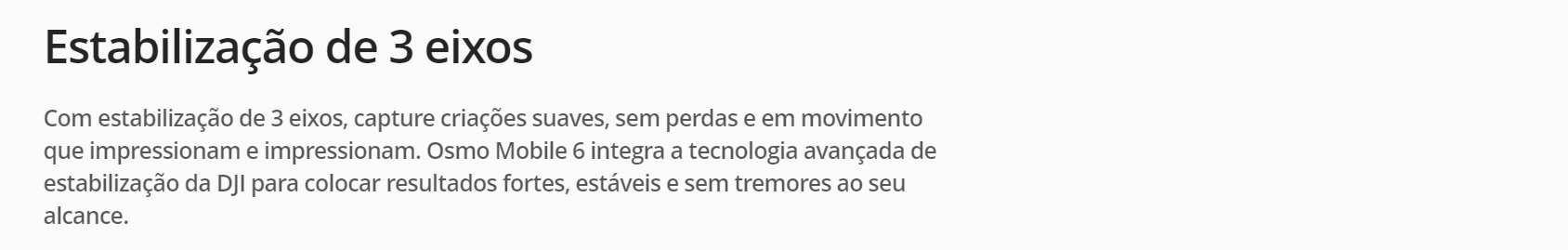 CaracteristicasEstabilização de 3 eixos - Active Tracking 5.0 - Haste de extensão integrada