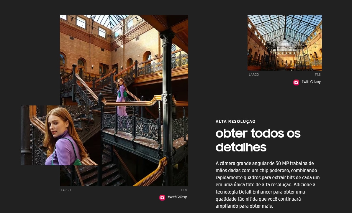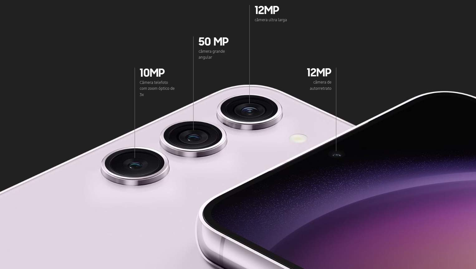 Câmera Principal50 MP, f/1.8, 23mm (wide), 1/1.56", 1.0µm, Dual Pixel PDAF, OIS, 10 MP, f/2.4, 70mm (telephoto), 1/3.94", 1.0µm, PDAF, 3x optical zoom, 12 MP, f/2.2, 13mm, 120˚ (ultrawide), 1/2.55" 1.4µm, Super Steady vídeo, LED flash, auto-HDR, panorama, Video 8K@24/30fps, 4K@30/60fps, 1080p@30/60/240fps, 720p@960fps, HDR10+, stereo sound rec., gyro-EIS