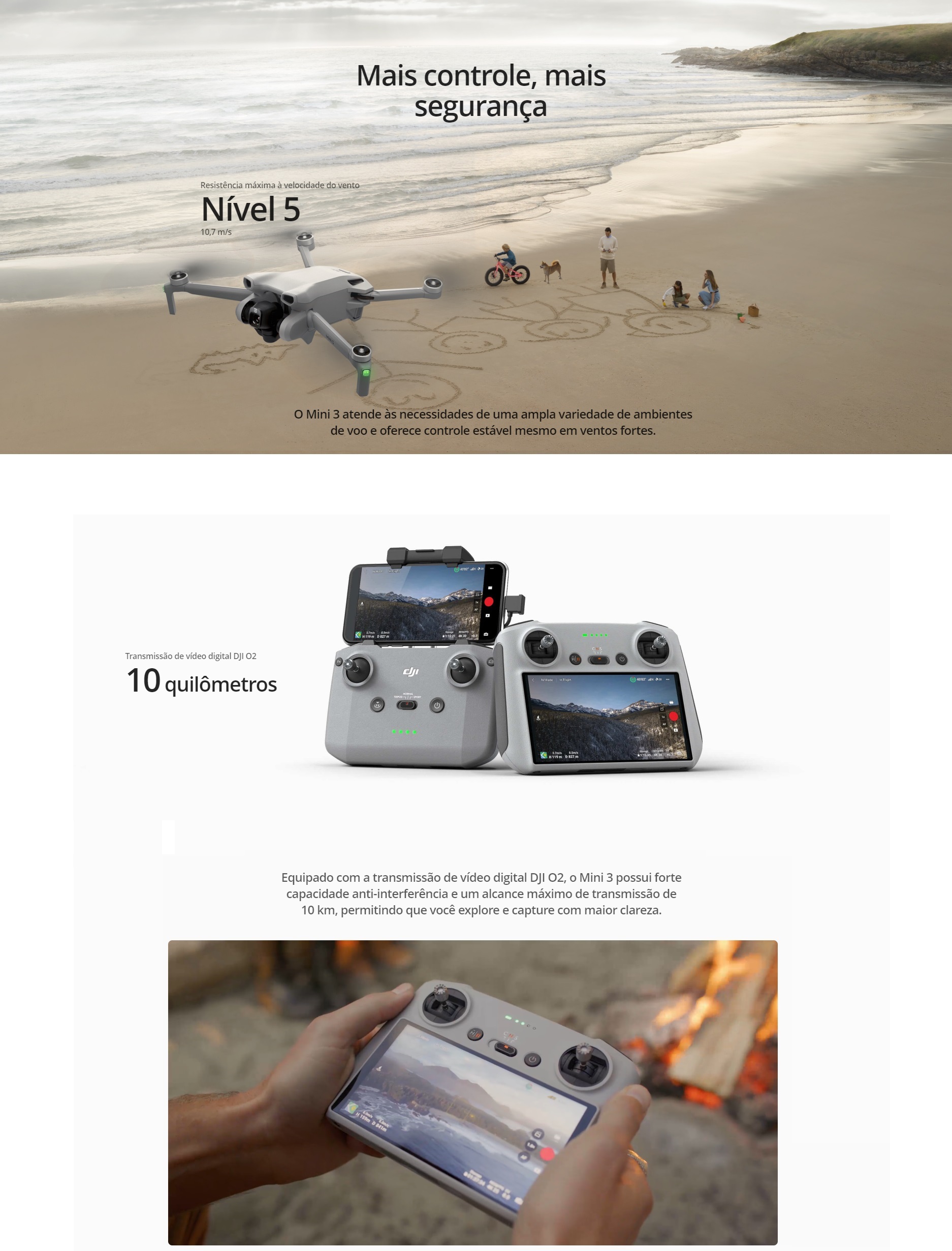 BateríaControle: 5200 mAh - Intelligent Flight Battery: 2453 mAh - Intelligent Flight Battery Plus: 3850 mAh