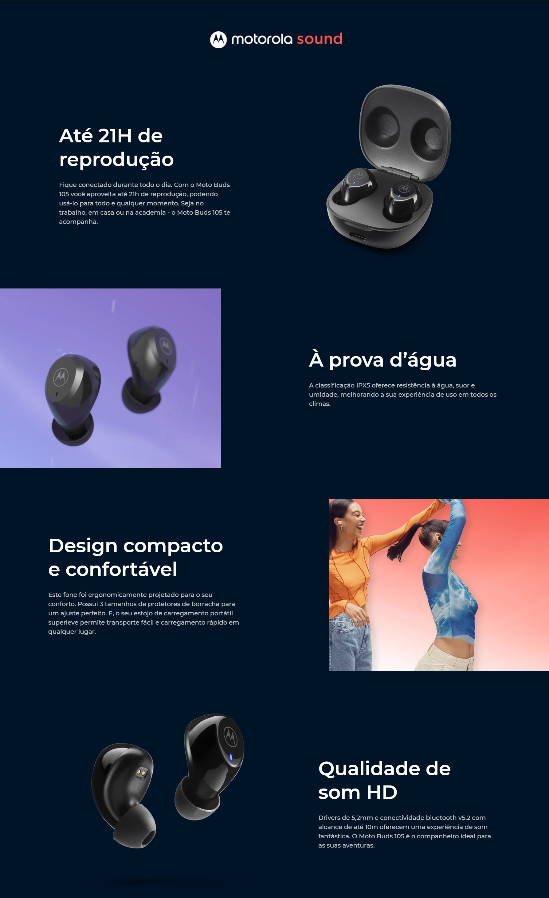 Fone de Ouvido Motorola Moto Buds 105 Bluetooth - Black | AtlanticoShop