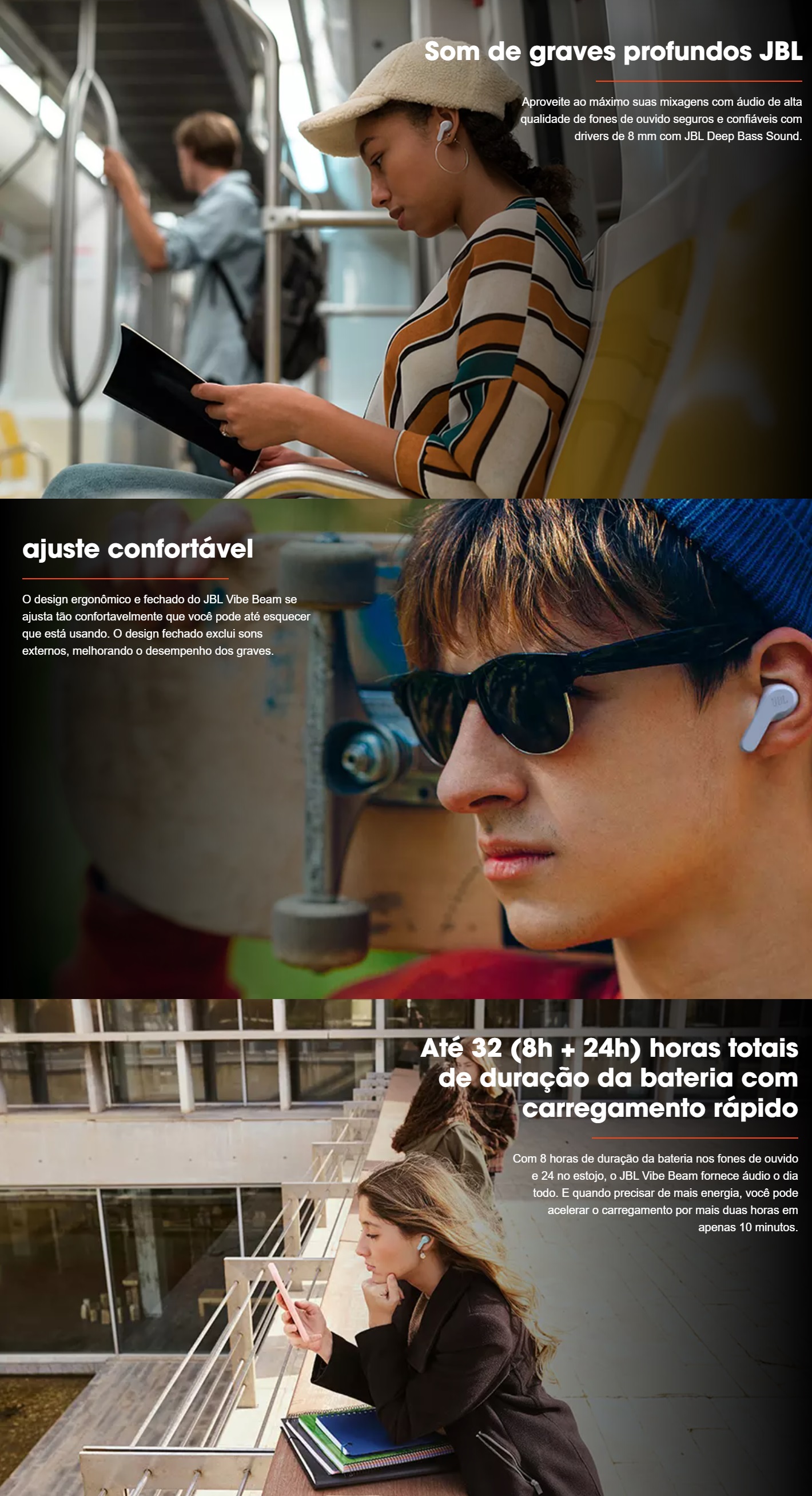 Fone de Ouvido JBL Vibe Beam Bluetooth - Black | AtlanticoShop