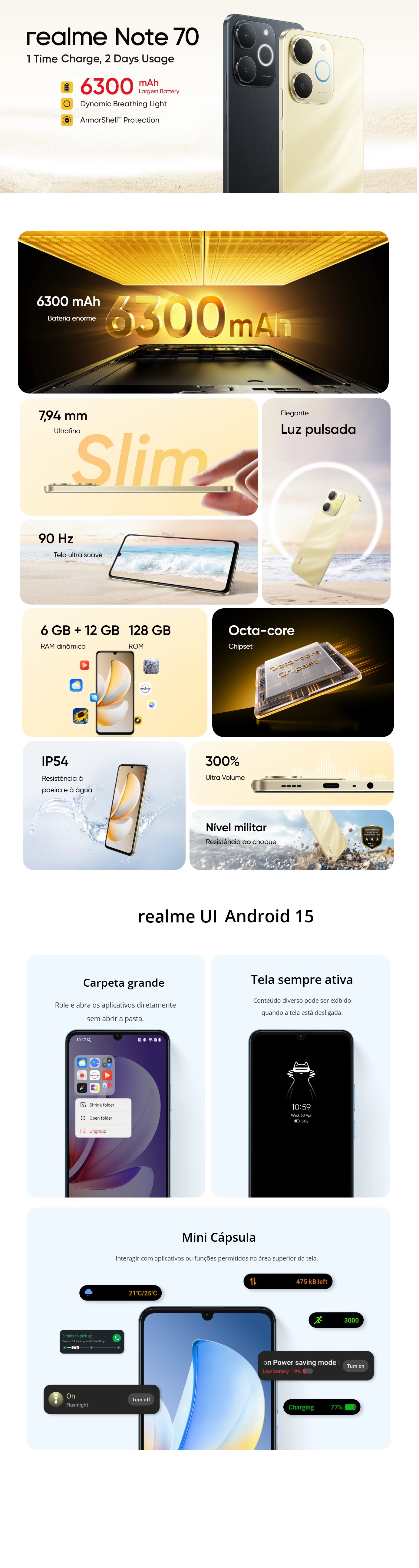 SensorSensor de proximidade, sensor de luz ambiente, sensor de impressão digital lateral, giroscópio, acelerômetro
