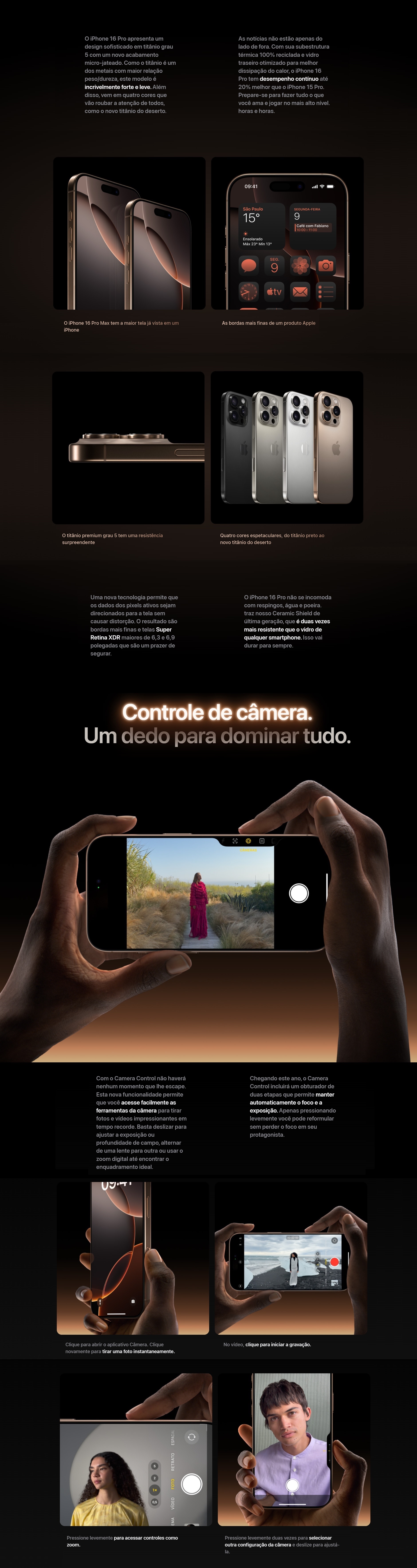 TelaLTPO Super Retina XDR OLED, 120Hz, HDR10, Dolby Vision, 1000 nits (typ), 2000 nits (HBM) com proteção Ceramic Shield glass (2024 gen) de 6.9"